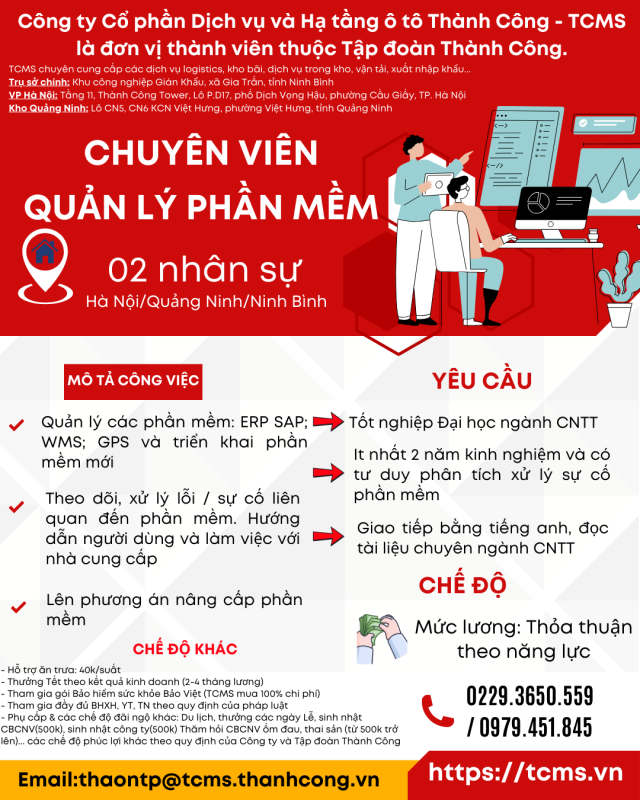 Ô TÔ THÀNH CÔNG – TCMS tuyển dụng Chuyên viên quản lý phần mềm